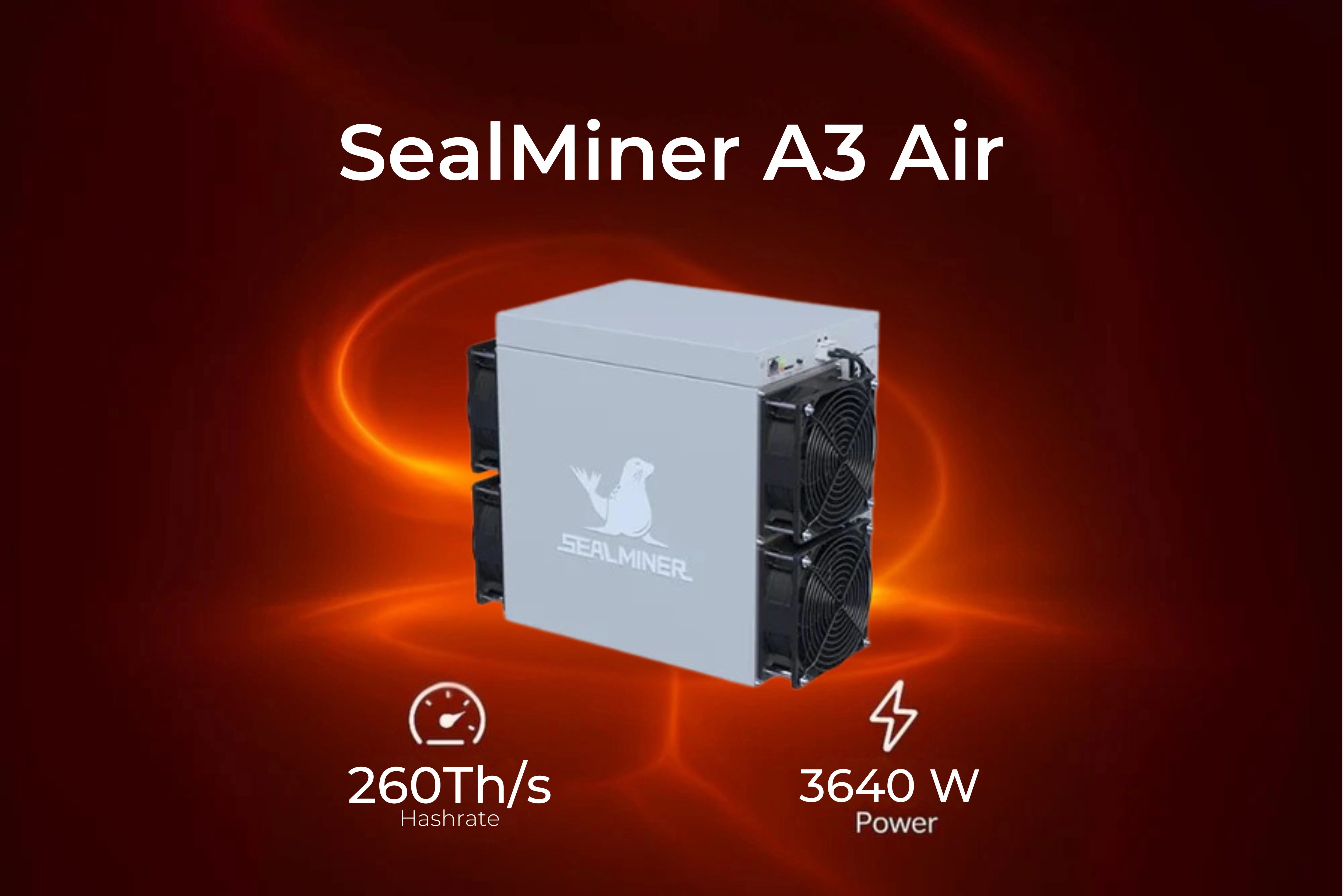 SealMiner A3 Air is manufactured by Bitdeer and supports the SHA-256 algorithm, offering hashrates of 260Th/s with consistent performance and a power consumption of 3640W.