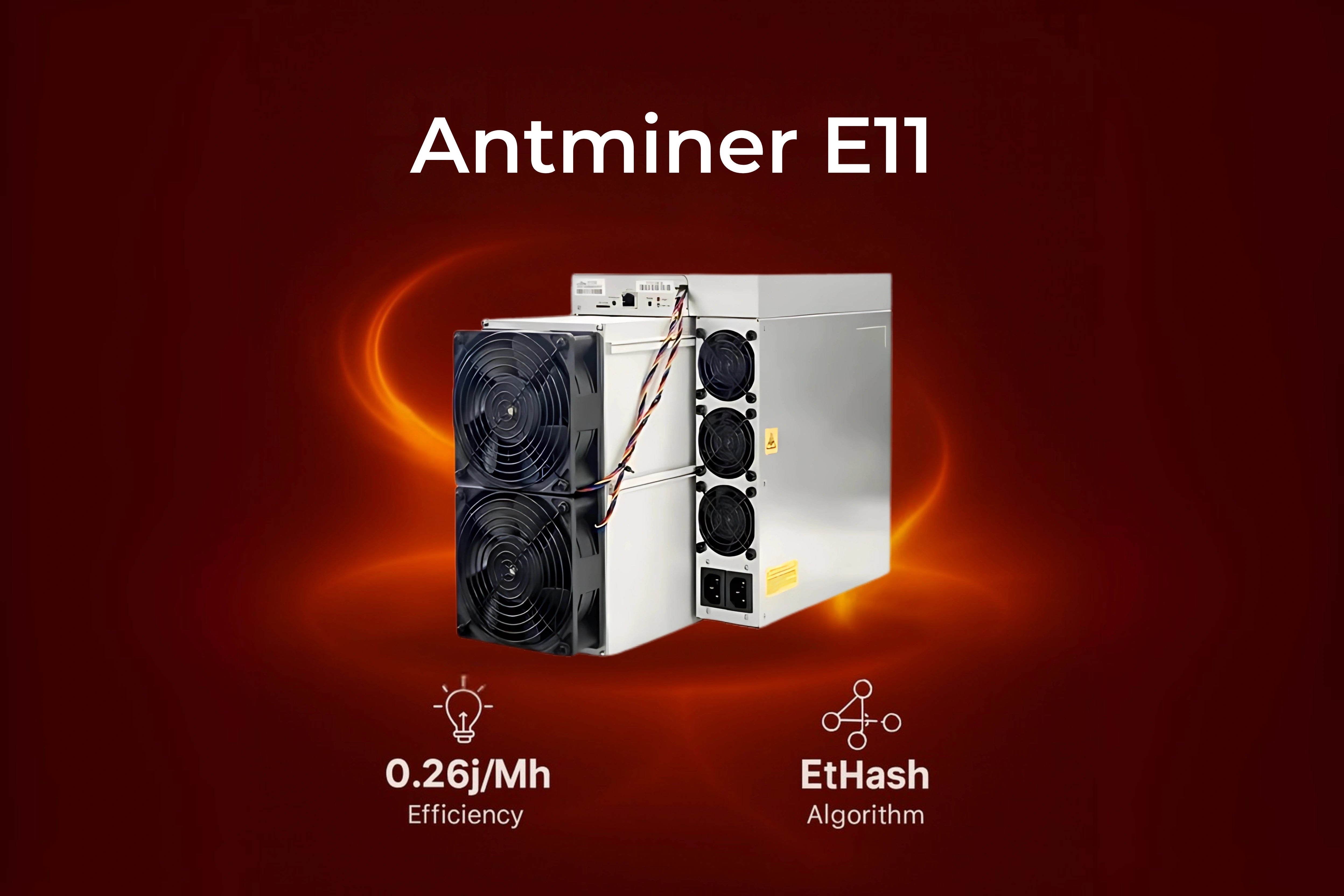 Antminer E11 is manufactured by Bitmain and supports the EtHash algorithm, offering hashrates of 9Gh/s with consistent performance and a power consumption of 2340W.