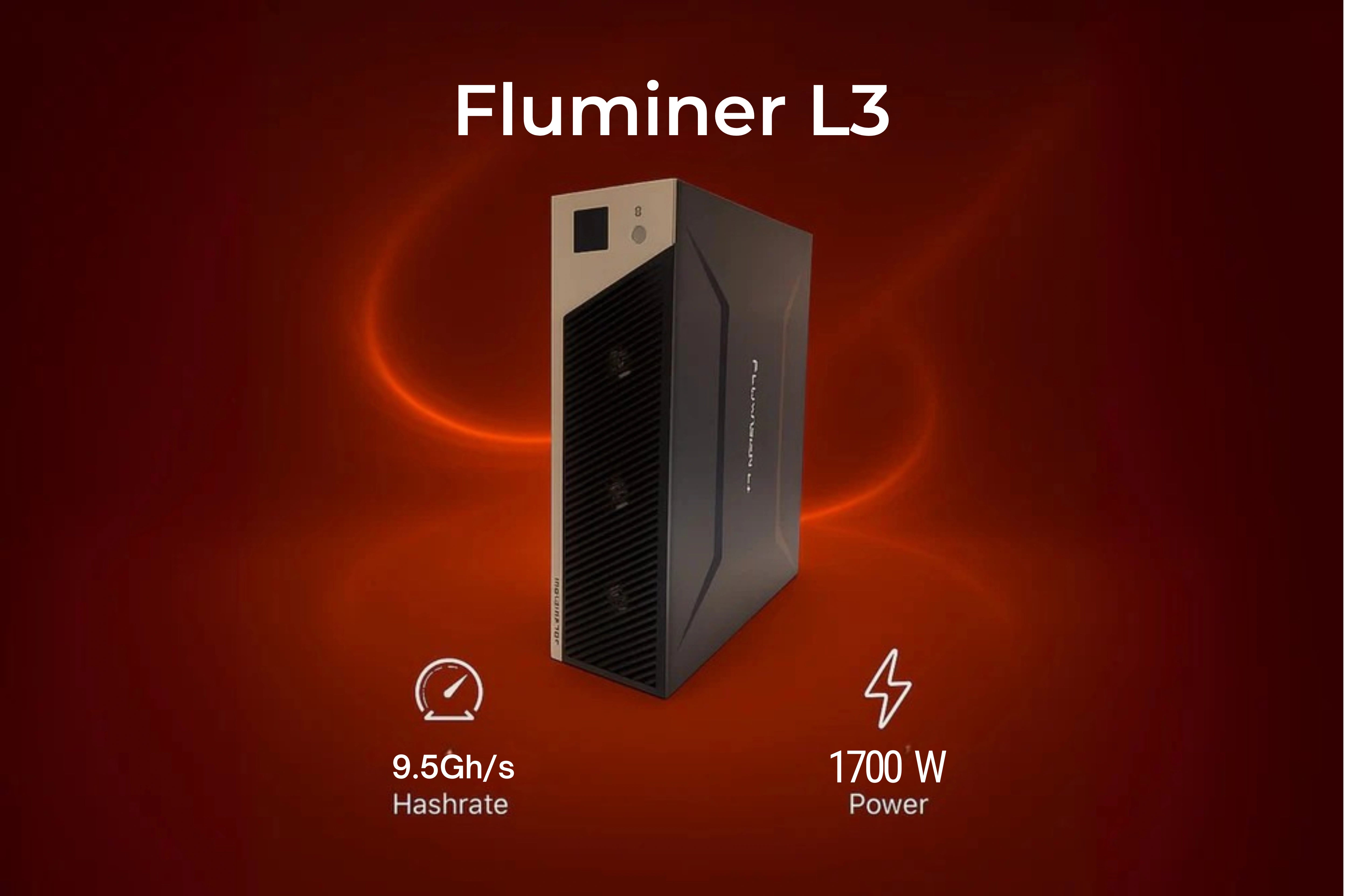 L3 is manufactured by Fluminer and supports the Scrypt algorithm, offering hashrates of 9.5Gh/s with consistent performance and a power consumption of 1700W.