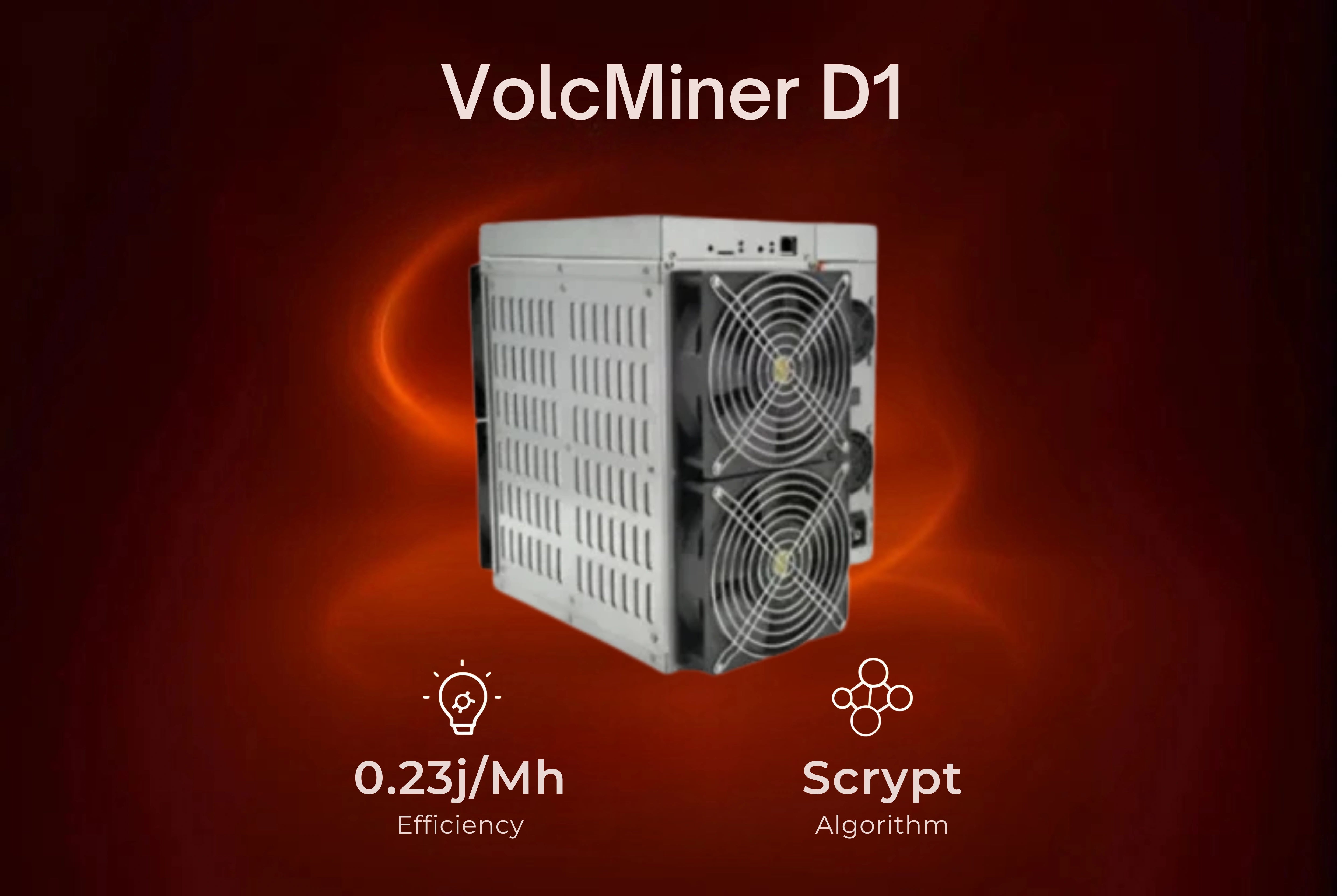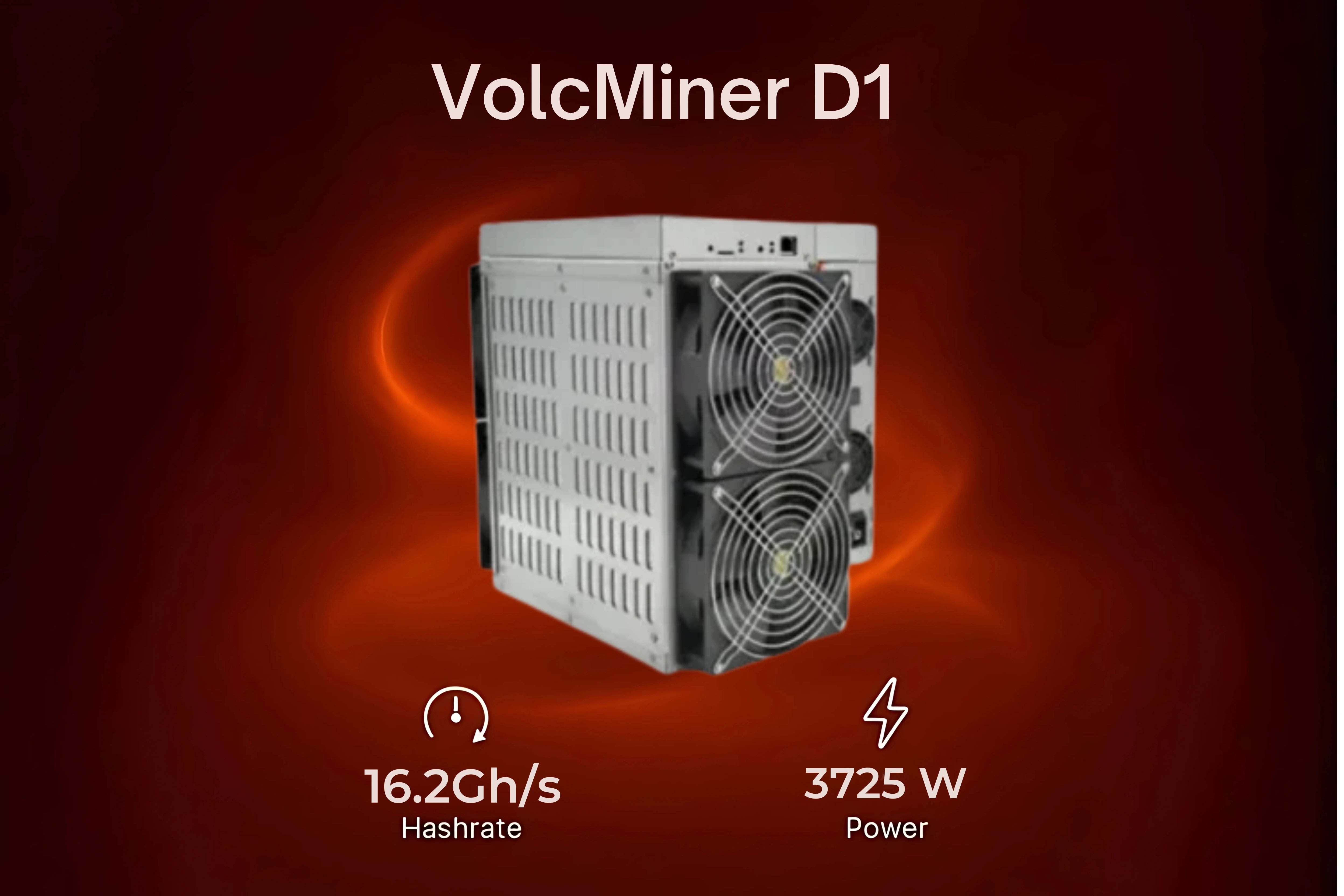 D1 is manufactured by VolcMiner and supports the Scrypt algorithm, offering hashrates of 16.2Gh/s with consistent performance and a power consumption of 3725W.