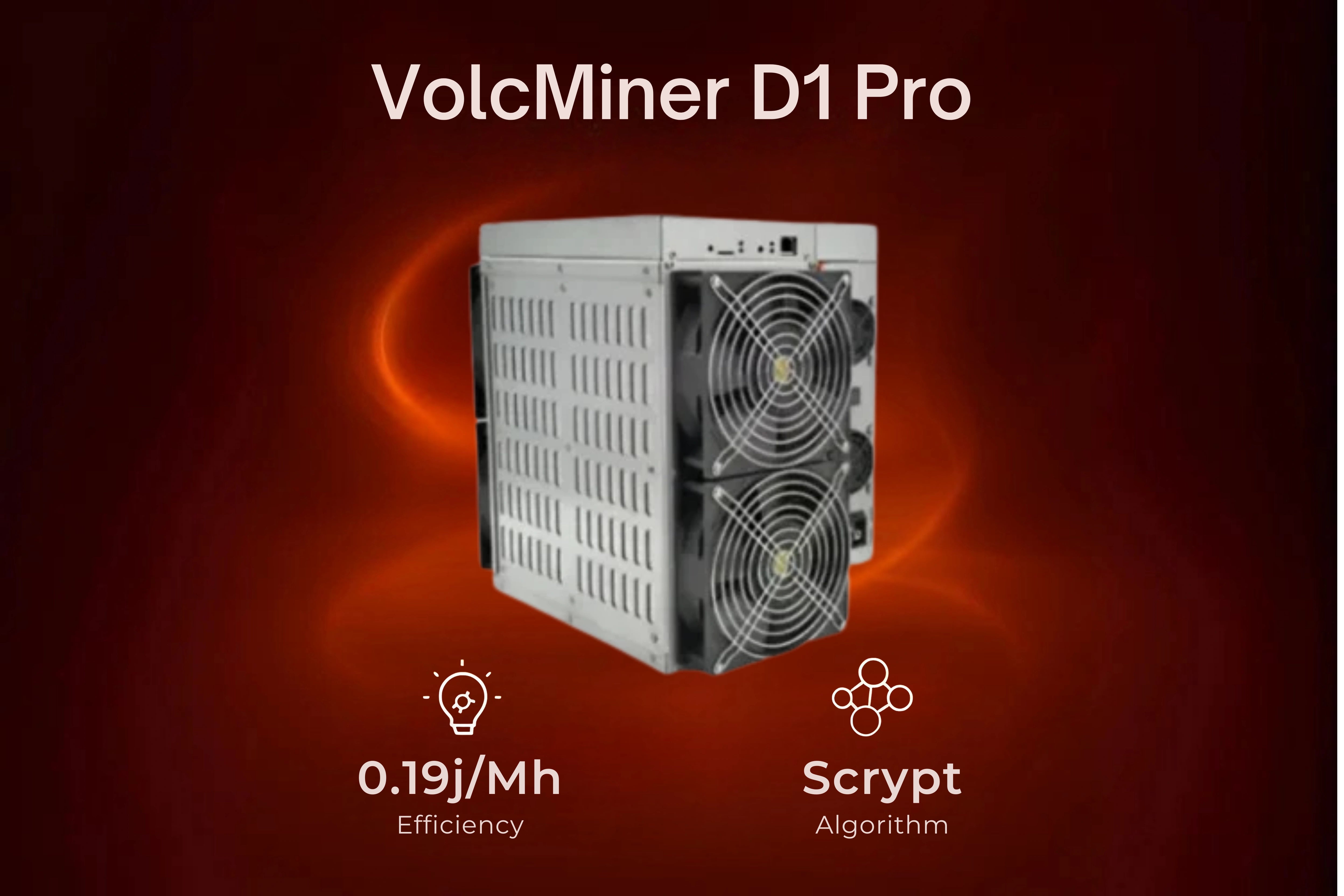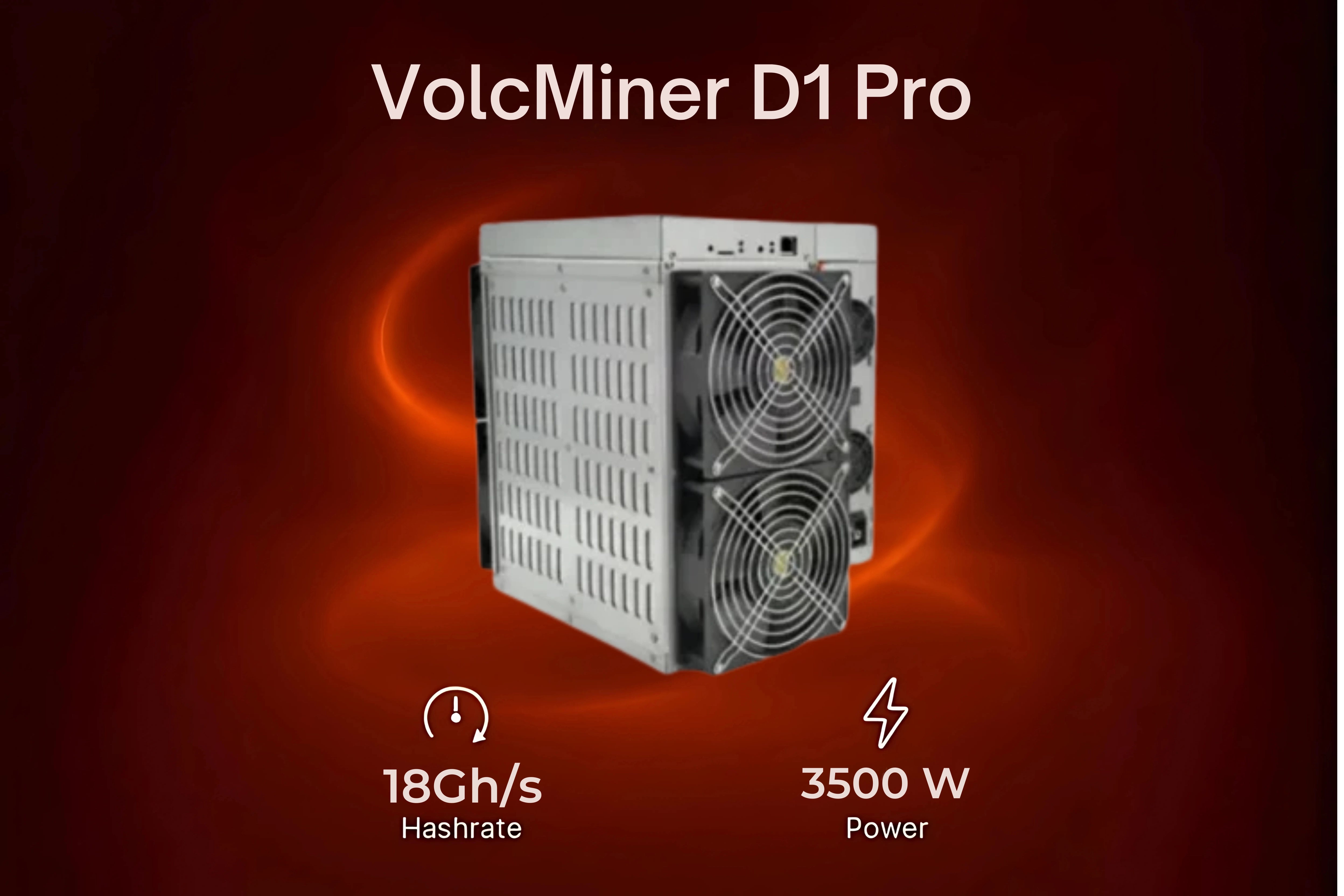 D1 Pro is manufactured by VolcMiner and supports the Scrypt algorithm, offering hashrates of 18Gh/s with consistent performance and a power consumption of 3500W.