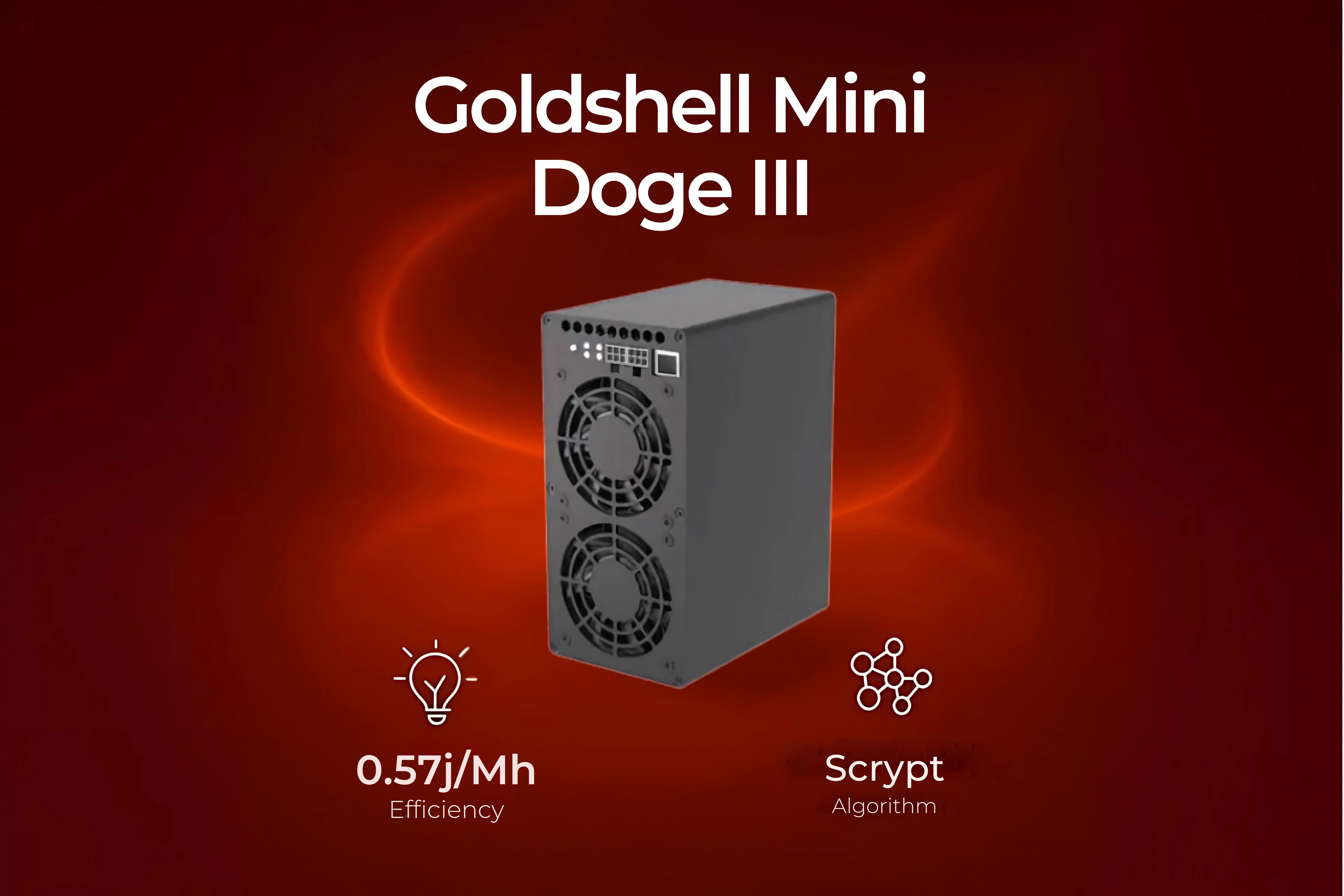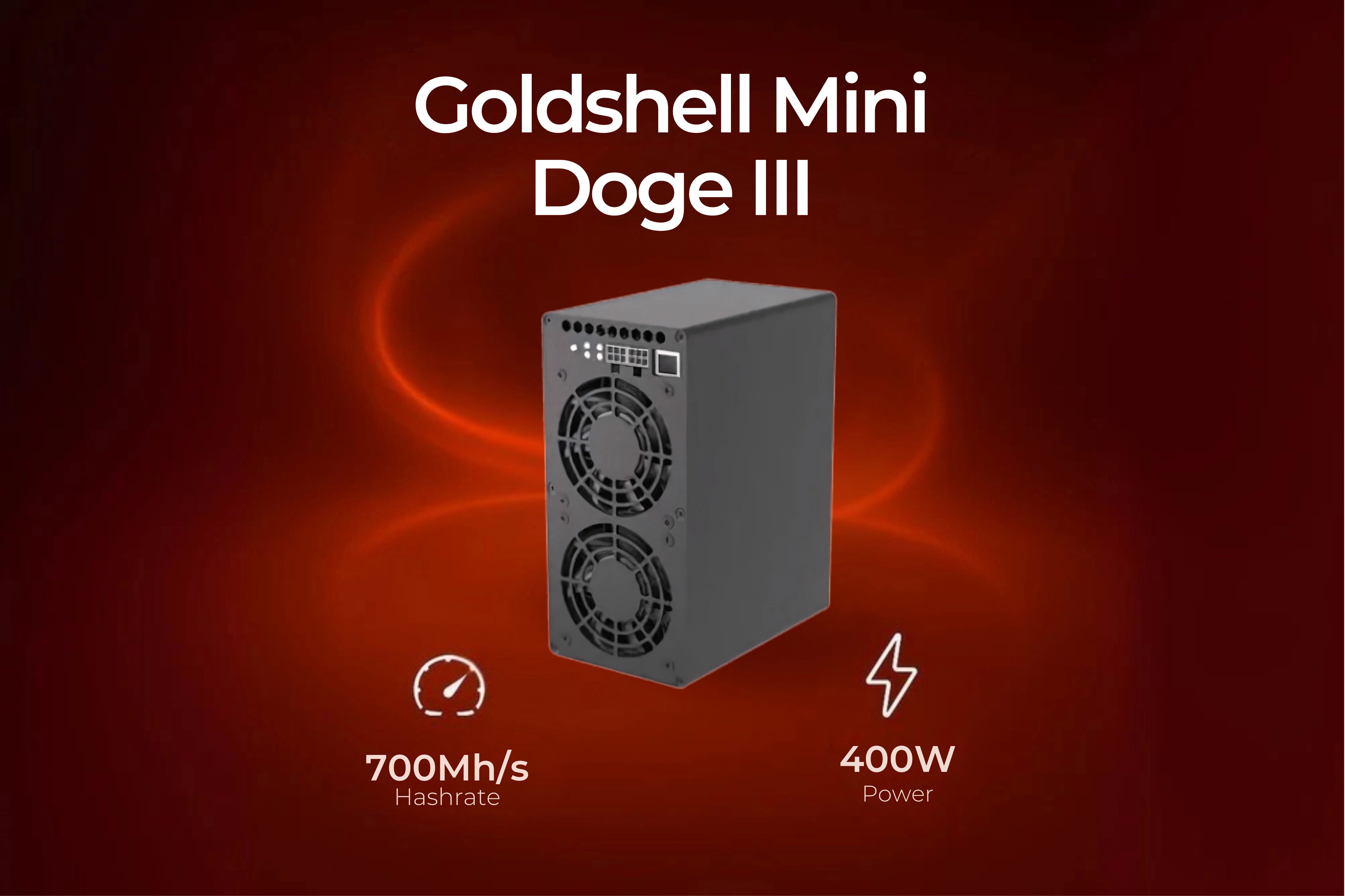 Mini Doge III is manufactured by Goldshell and supports the Scrypt algorithm, offering hashrates of 700Mh/s with consistent performance and a power consumption of 400W.
