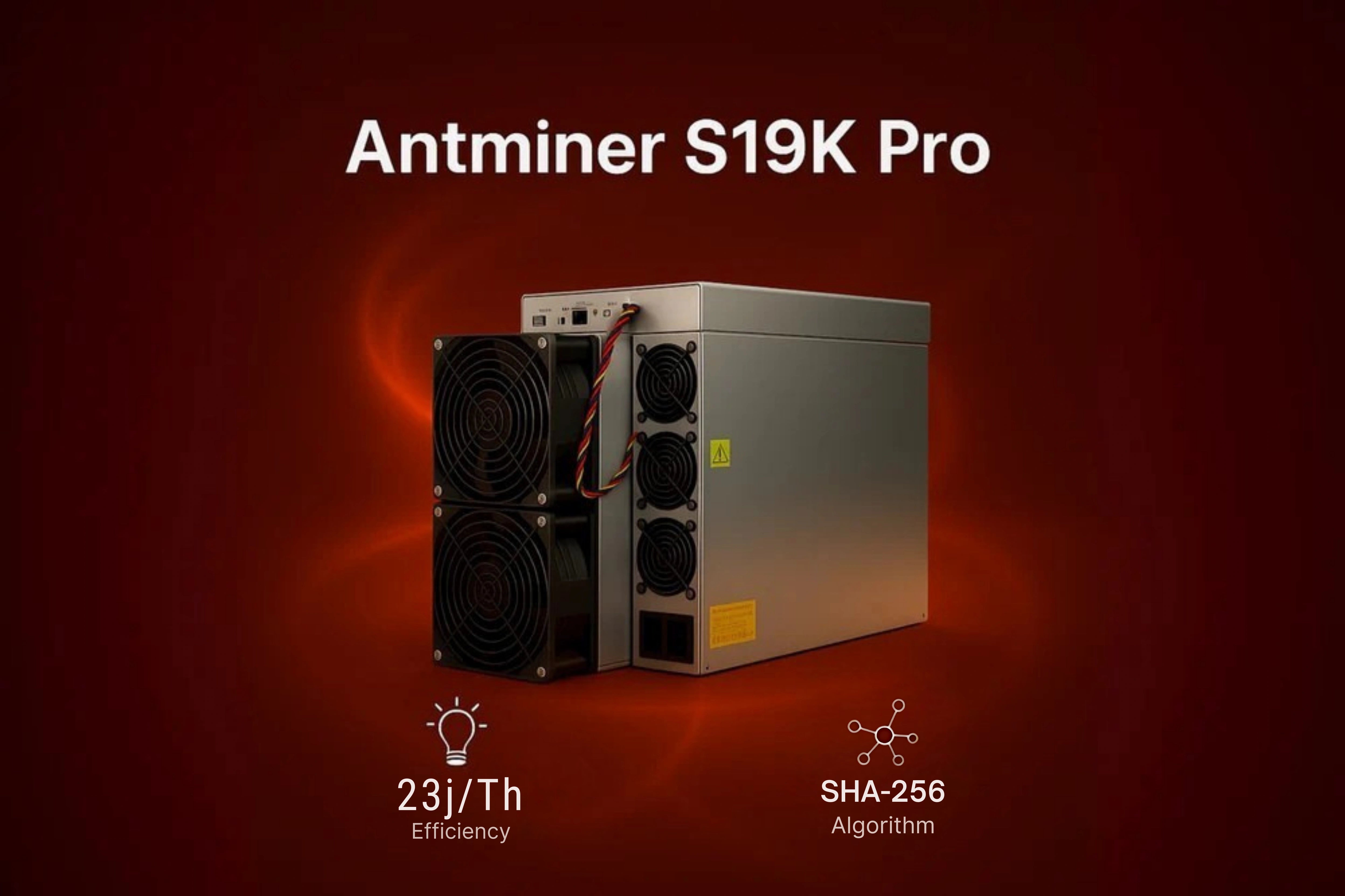 Antminer S19K Pro is manufactured by Bitmain and supports the SHA-256 algorithm, offering hashrates of 120Th/s with consistent performance and a power consumption of 2760W.